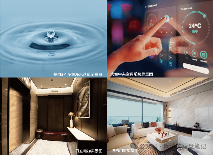 当智能科技结合现代居所,理想人居得以升华。采用国际一线品牌交付标准,引入霍尼韦尔多重净水系统、日立电梯、德国旭格门窗与大金中央空调系统。