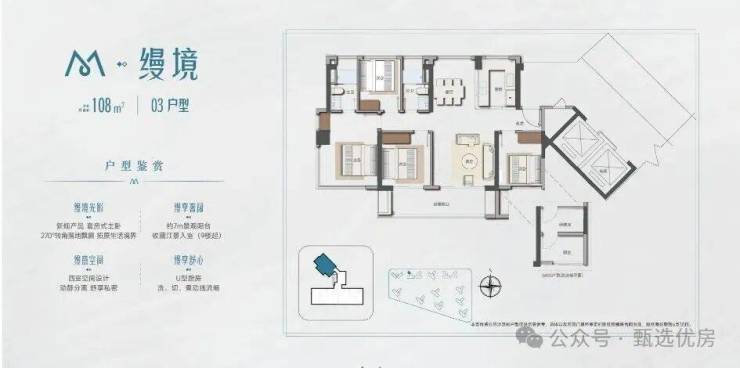 约8.1m宽幕主阳台,内可望园景 外可望江景+城景南向四开间约15.8m+主卧约4.4M观景阳台