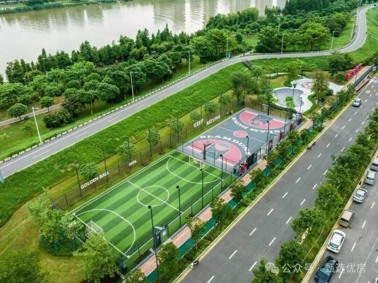 项目自建约5900方江边体育公园,内设5人标准足球场、全场篮球场、滑板场、一米社区农场等特色场所,满足全方位运动与娱乐需求