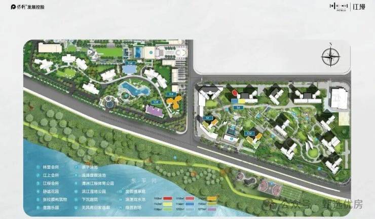 环抱式亲江布局 地势抬高 3 米实现户户朝南 江景环绕在家也坐拥 270° 无边界巨幕江景