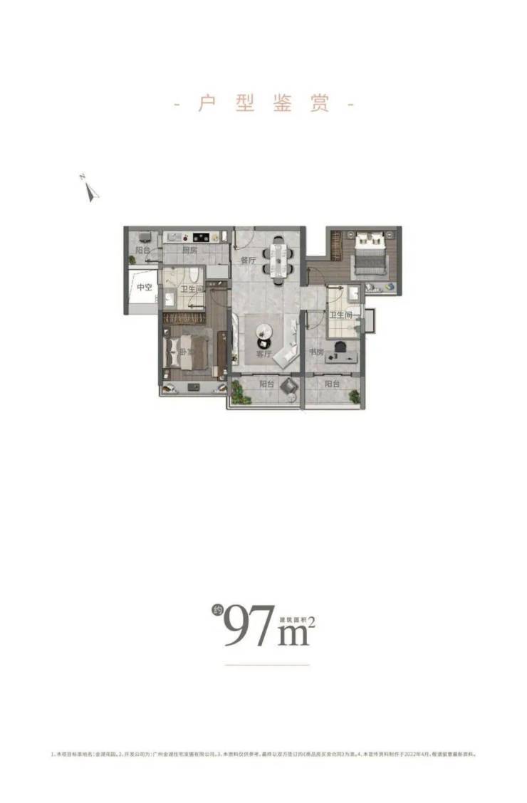 金湖花园总占地面积达27万平方米,整体规划分为五期开发,目前已推出第五期【天岚】。项目总户数仅为580户,容积率低至0.64,是广州市区罕见的低密社区。当前在售的【天岚】产品涵盖97至167平方米的三至五房洋房,分为两种建筑形态:其一为9层小高层,主力户型为143平方米五房,采用1梯2户设计,朝向东南,可俯瞰中心园林及山湖景观;其二为33层高层住宅,户型面积为97至128平方米的三至四房,采用2梯3户布局,南向直面中心园林与金湖景观。所有楼栋均采用纯板楼设计,实现南北通透对流,最大化引入自然光线与景观视野。