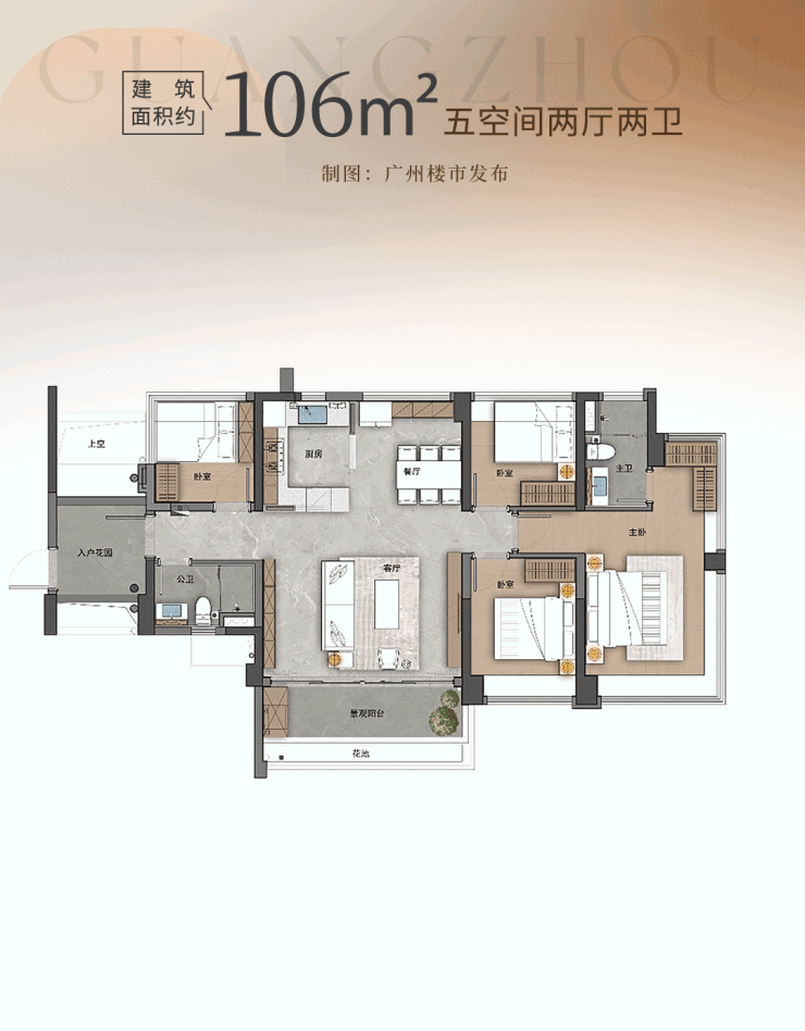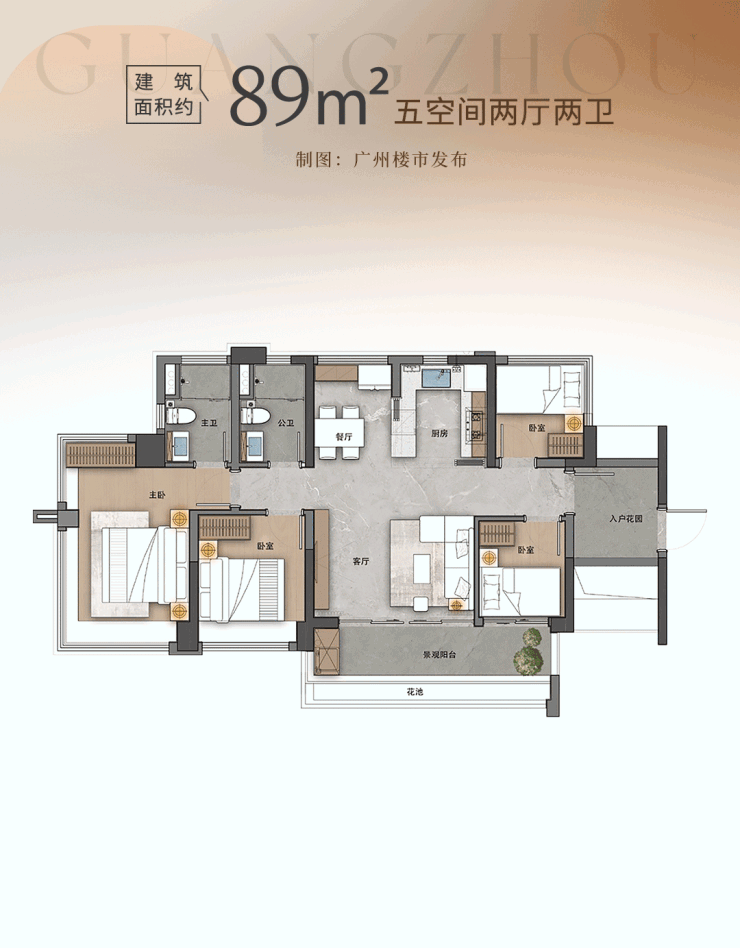 户型面积:建面约71-127㎡全南向4/5空间两厅两卫