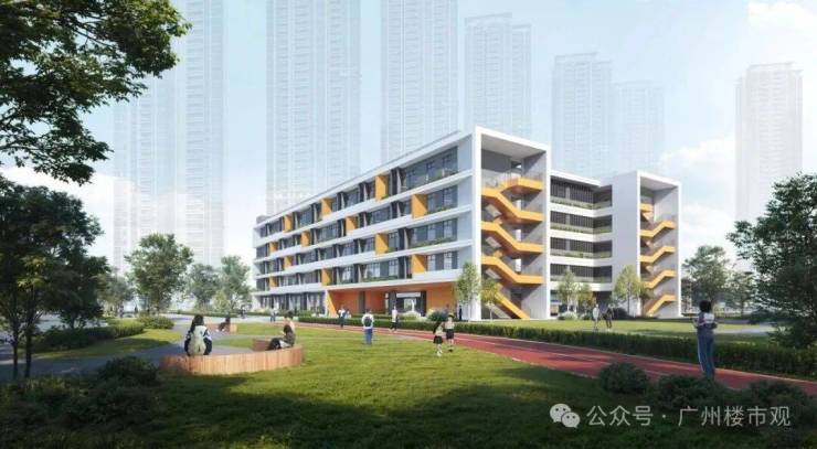小区北侧配建了一所36班的九年制学校,番禺区教育局、广东外语外贸大学,以及珑曜上城,就配建的九年一贯制学校,达成了三方协议!