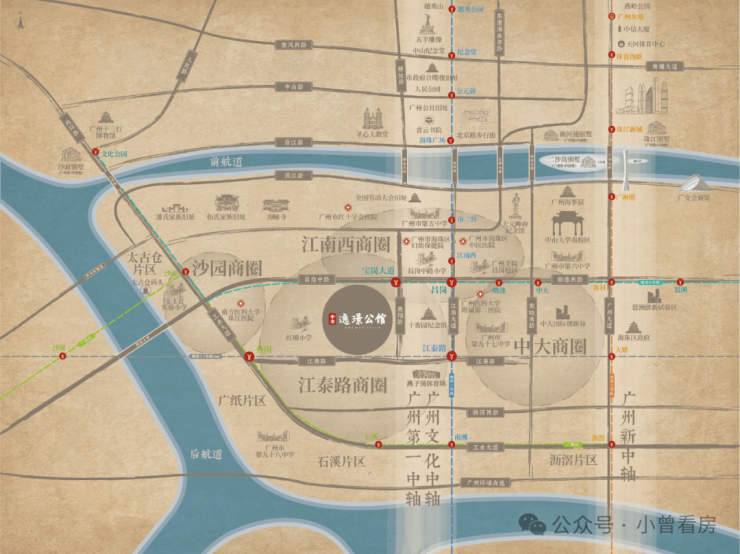 中冶·逸璟公馆项目地处广州市区海珠中心、江南大道之上的核心区位,尽享海珠区三条黄金居住走廊的价值汇集。