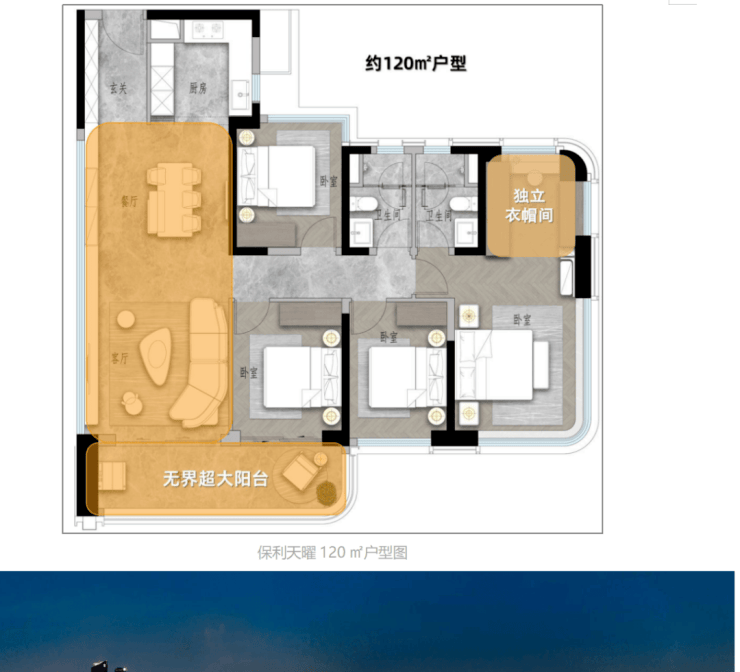 作为珠江新城首个同尺度下做到四房两卫的产品,120㎡户型拥有女王级独立衣帽间、约6.7米双面宽阳台、环幕瞰景窗等珠城稀缺的产品亮点,随着报建规则逐日缩紧,这样的户型以后很难再次出现。
