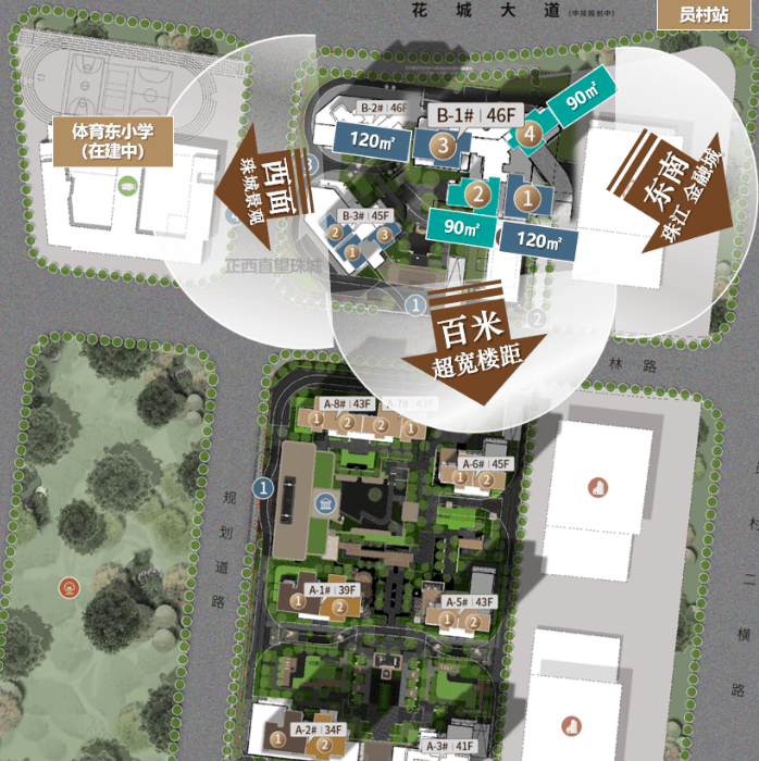 珠城-金融城(东西向):项目北侧花城大道规划东扩南移,项目南侧临江大道隧道已通车——广州主要城市干道,占据着珠江新城千亿级的市政配套,布局了城市顶级城市建筑群,汇聚了广州鼎豪住宅;双主干道将贯通珠江新城与金融城,禀赋核心资源向东贯通的城市动脉;