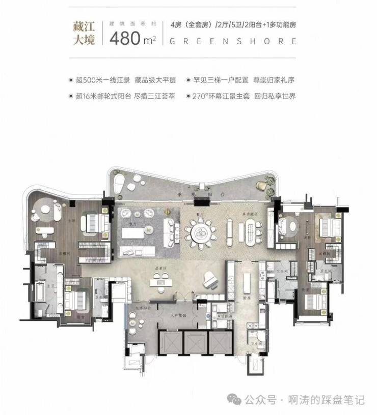 ②超 500 米一线江景,全市稀缺藏品级住宅大平层;