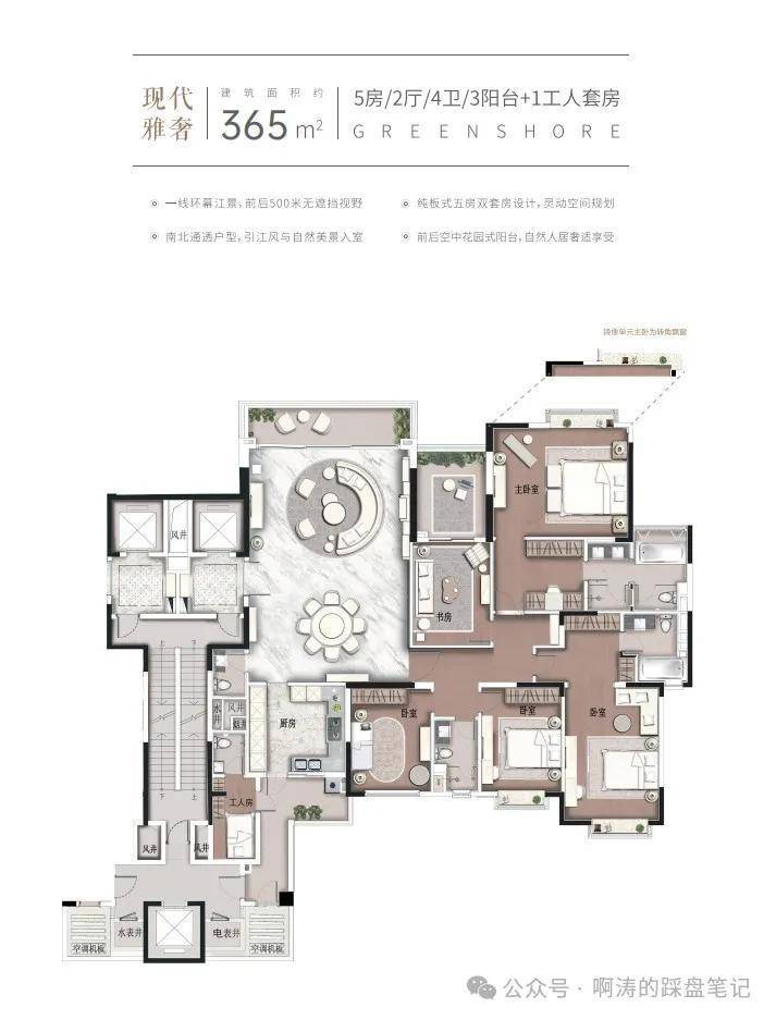 约365㎡5房双套房|2厅|4卫|3阳台+1工人套房