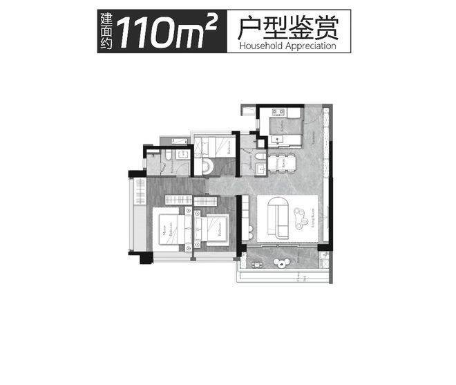 主力户型建面约110–186㎡,涵盖三至四房设计,均以LDK(客厅、餐厅、厨房)一体化、全明多开间朝南、超大面宽阳台等理念打造。其中,约186㎡四房户型更配备超80㎡巨幕宽厅、40㎡端厅主卧套房,搭配270°全景视野,尽揽花地湾河涌一线水景,营造堪比酒店总统套房的居住体验。