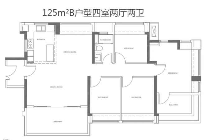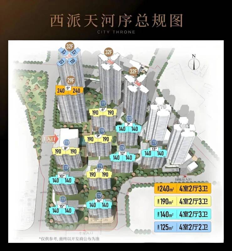 天河序首推3个户型:125㎡、140㎡、180㎡的四房。中125㎡有ABC三种户型,总货量约270套,两梯四户;140㎡有AB两种镜面户型,总货量约208套,两梯两户;180㎡有AB两种镜面户型,总货量约96套,两梯两户,产品执行新规,使用率超100%。