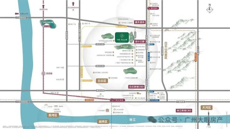 地铁2号线:距黄边站(运营中)直线距离约800m,3站白云新城,直达江南西,广州南。1站换乘嘉⽲望岗(地铁2/3/14号线交汇)。