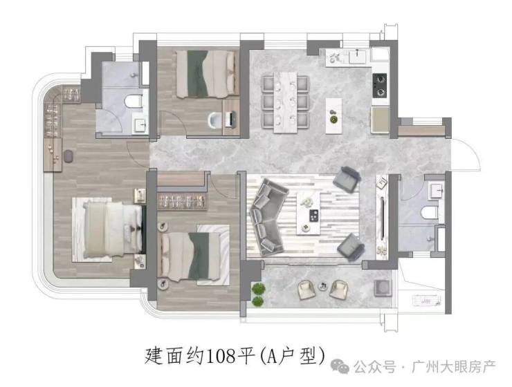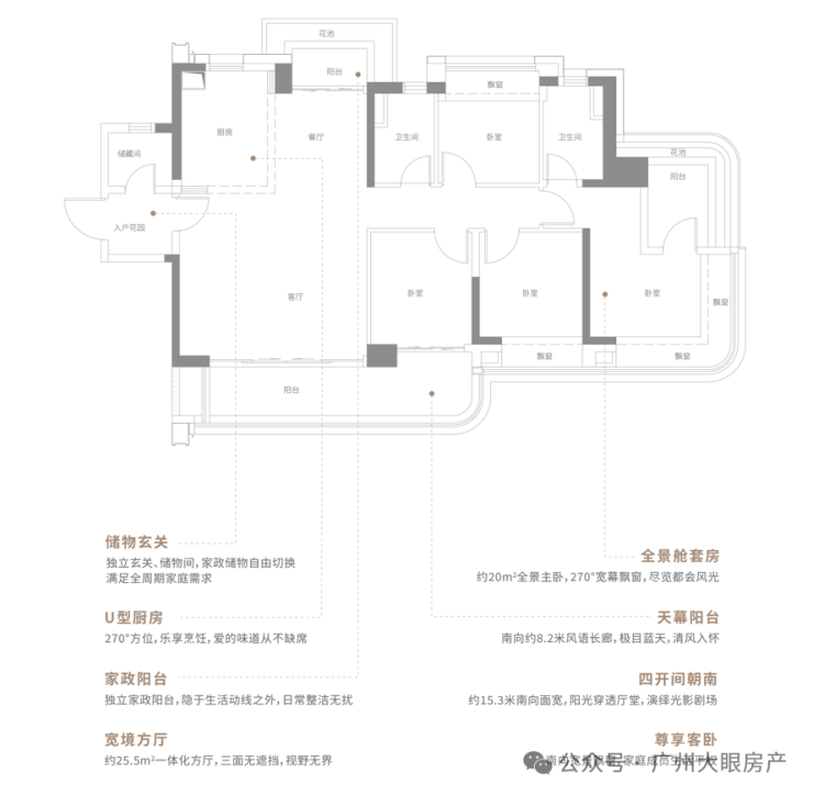 中间C位的3栋是两梯两户大平层,建面约226平