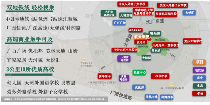 天外智谷分为两个校区,越秀观樾配建24班小学;缦云广州配建的九年制学校(18班小学+27班中学),今年9月份可以报名读书。