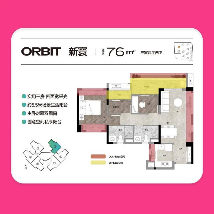 【约76㎡3房2厅真2卫】卷出天际