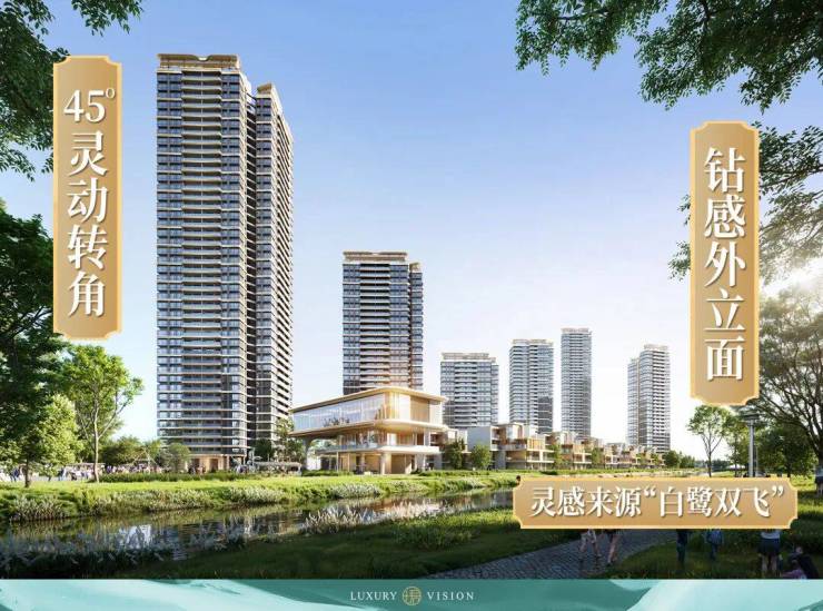 ★【白鹭双飞 滨水之庭】以45°灵动转角的非凡立面,诗意演绎“白鹭双飞”意象,成为城市瞩目的艺术地标,尽享归家府院礼序感及恢宏感,将品质感从建筑外观无缝延伸至整个归家动线