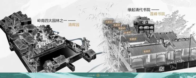 ★【师法清晖 岭南传承】园林取意莲峰书院之庄敬风骨,意境融汇清晖园之玲珑秀雅。