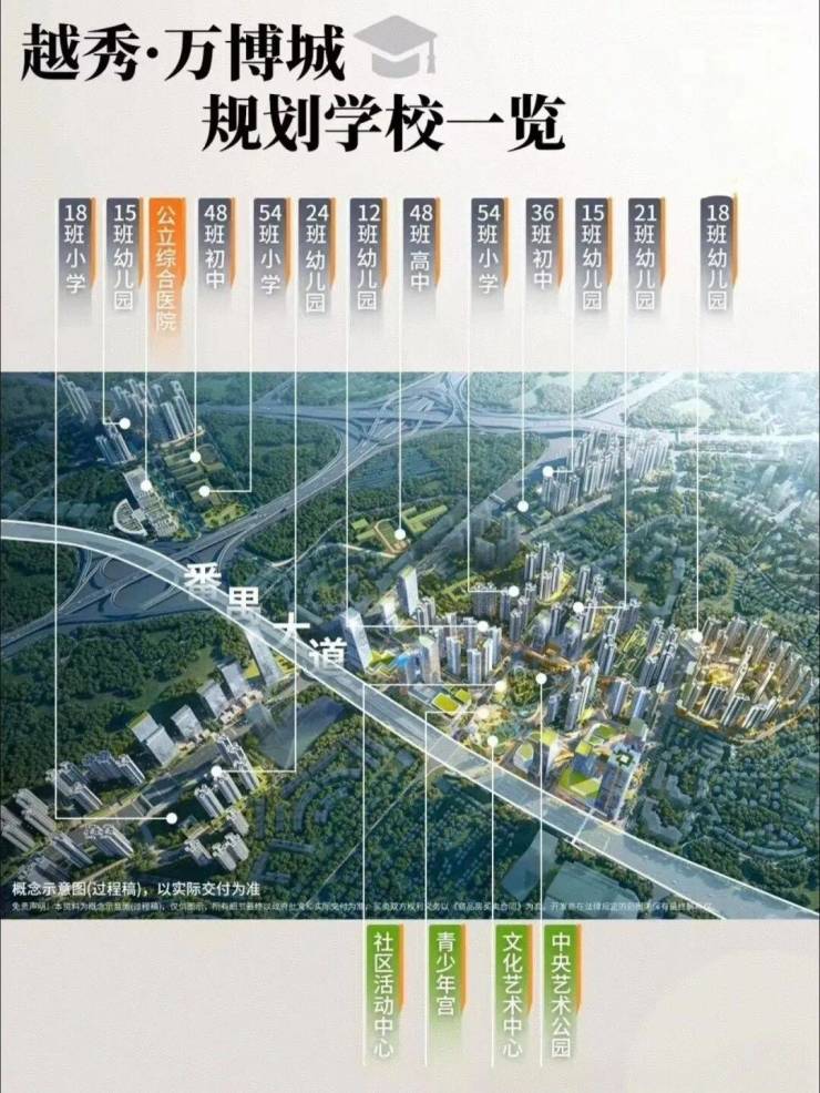 规划12所学校,包括6所幼儿园、3所小学、2所初中、1所高中;已引入番广实验教育集团办学,由广大附中番禺实验学校具体管理,教学质量有保障。