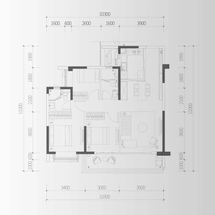 C1户型:建面约143㎡三房两厅两卫
