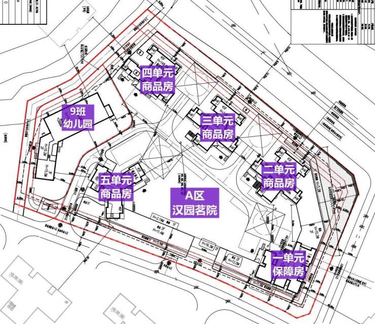 汉园茗苑分两个地块A区和B区,A区是由4栋高层住宅和1栋保障房组成,总1014户,其中保障房331户,可售商品房683套;一单元、五单元层数为46层,二三四单元层数为45层;一栋一单元为保障房;