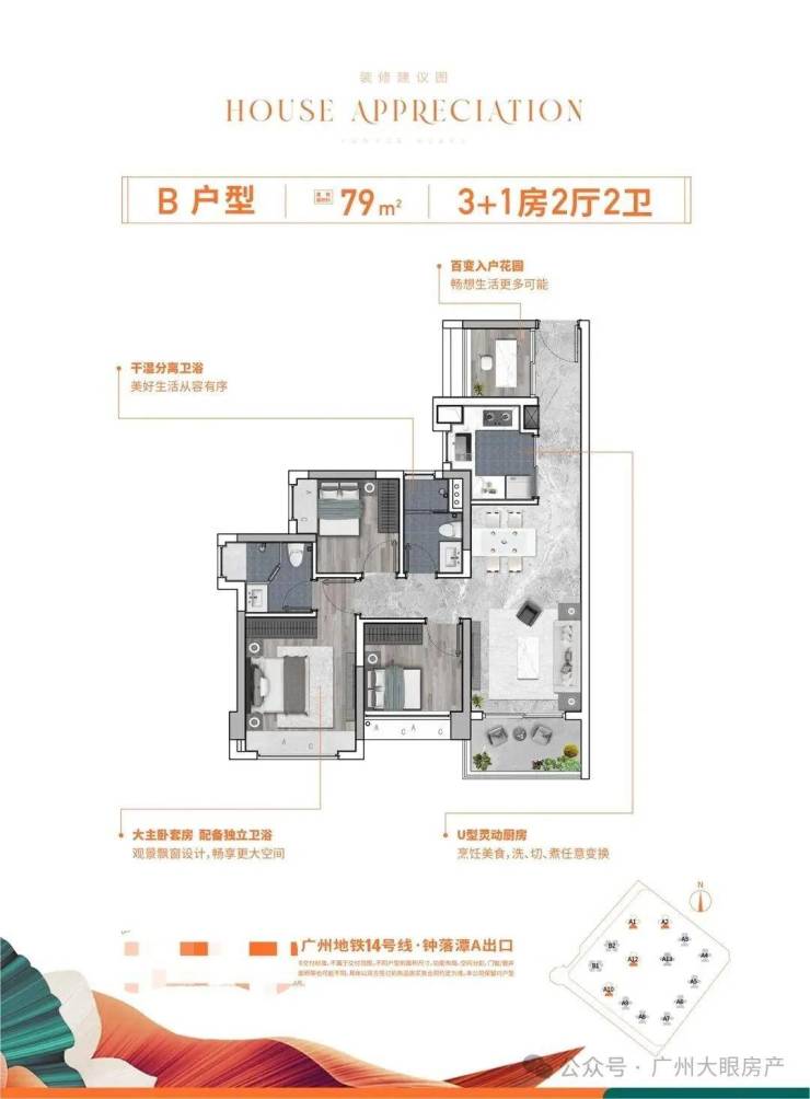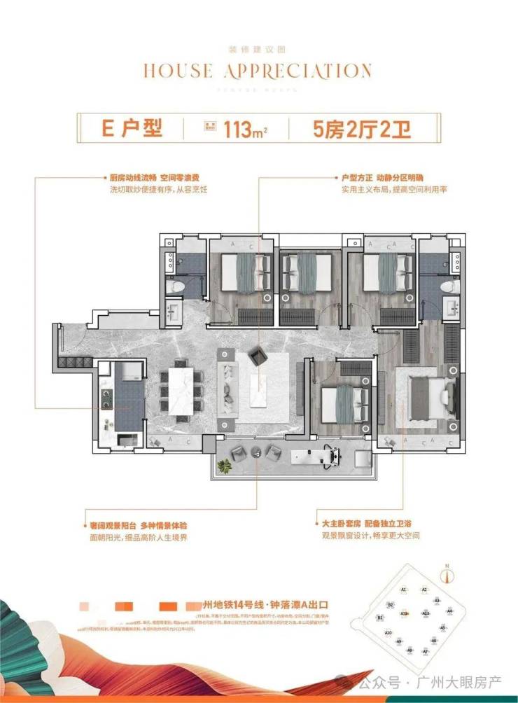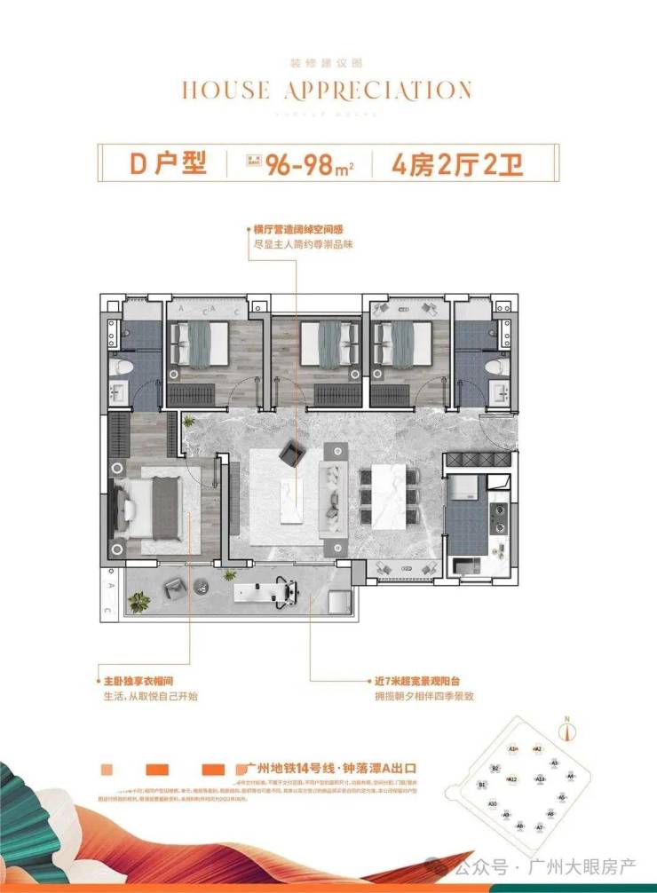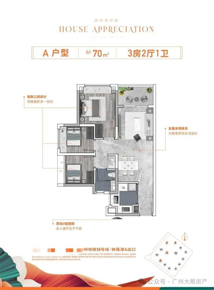 项目位于地铁14号线钟落潭站旁,距离大概1000米,5站到嘉禾望岗,换乘2、3号线可直通白云新城和畅达广州全城;
