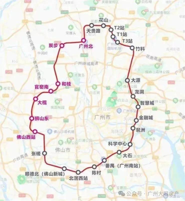 新白广城轨(在建中)1站白云机场,南向通达东莞和深圳。