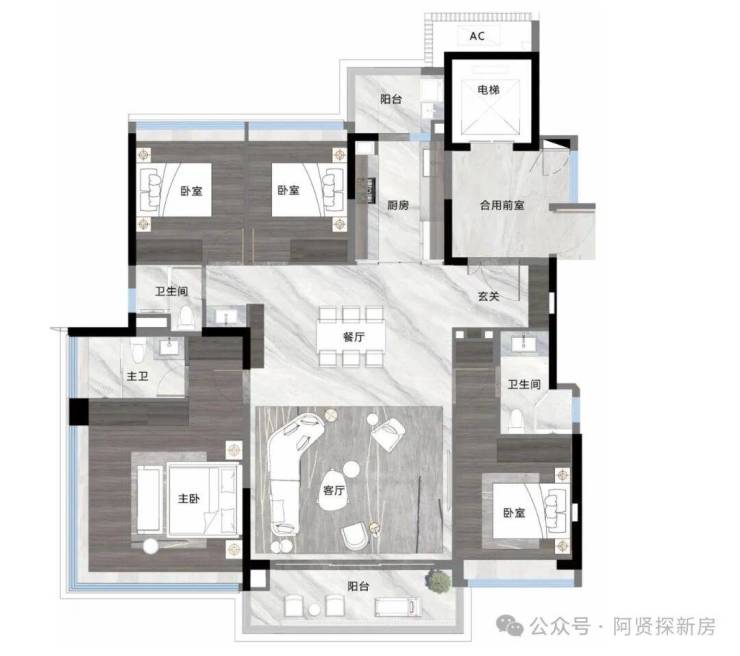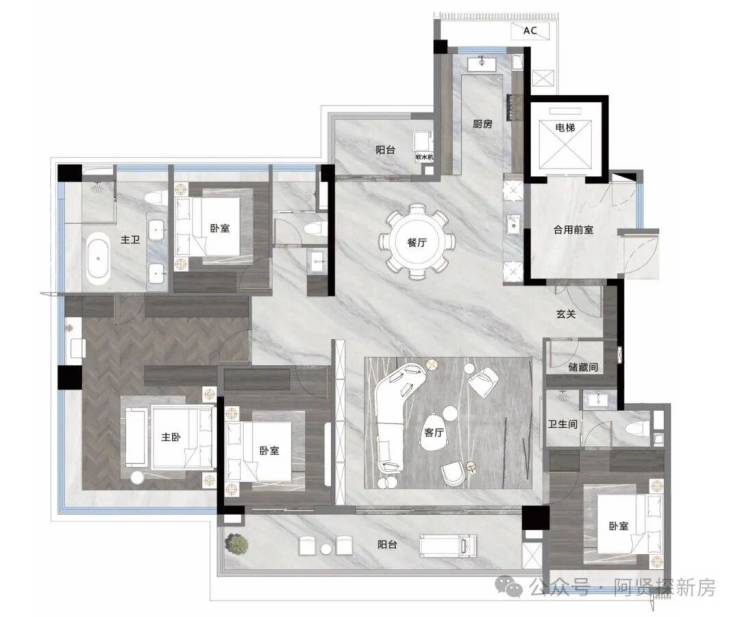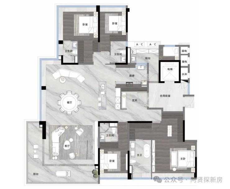 ——全套房设计·122㎡定制化社交巨厅·双归家动线·15米270°转角阳台