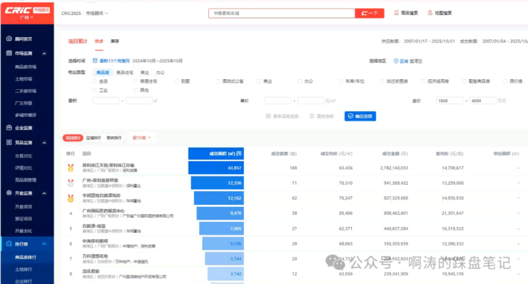 (数据来源:克而瑞 | 2024.10.1-2025.10.31 | 1000-4000万总价段成交面积排名)