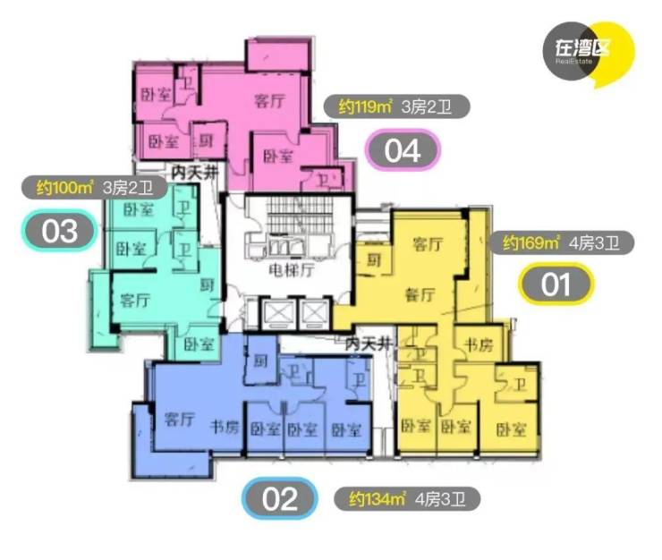 户型方面,以100-169平三至四房改善户型为主。