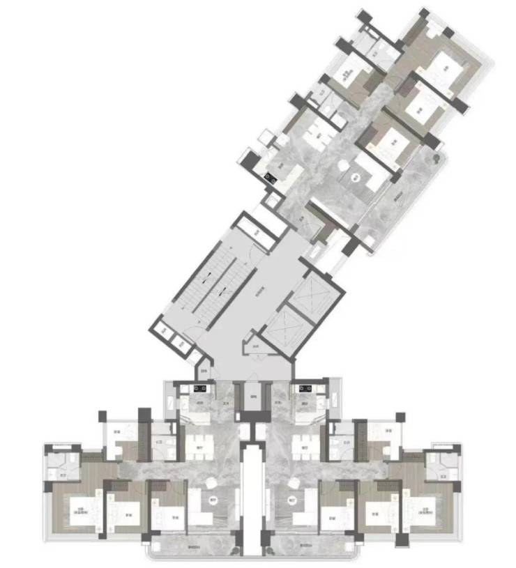高区为25-37层,两梯三户,有建面约135、160、195平三种户型。