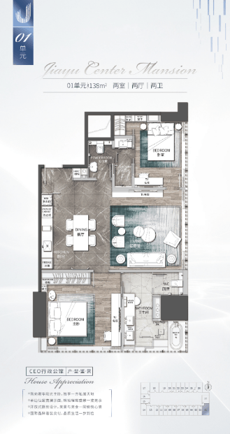 定位国际酒店行政公馆,以五星级酒店标准打造奢华居所,集聚 JW 万豪酒店、高端商业、私人会所等配套,营造精致奢华生活氛围。