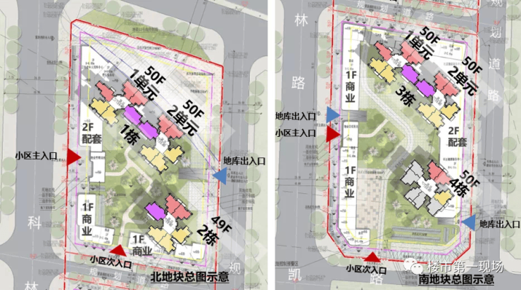 项目总用地面积约28564.79㎡,建筑面积约162340㎡,规定容积率≤6.0,由南北两地块组成,规划4栋150米超高层住宅,其中1栋(1、2单元)、3栋(1、2单元)和4栋为50层,2栋为49层。