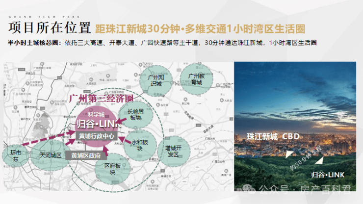 【万达广场旁繁华商圈】万达广场、高德汇、大壮国际广场、至泰广场、广州首个【大悦汇】等八大商圈环伺,举步即享万象。归谷·LINK位居科学城核心地段,坐落于广州市黄埔区科丰路和开泰大道交汇处。科学城占据广深科技创新走廊科创大动脉顶端,经过20多年的发展,它已由产业集聚的起步发展期迈入产城融合得科学发展期,堪称“广州硅谷”!