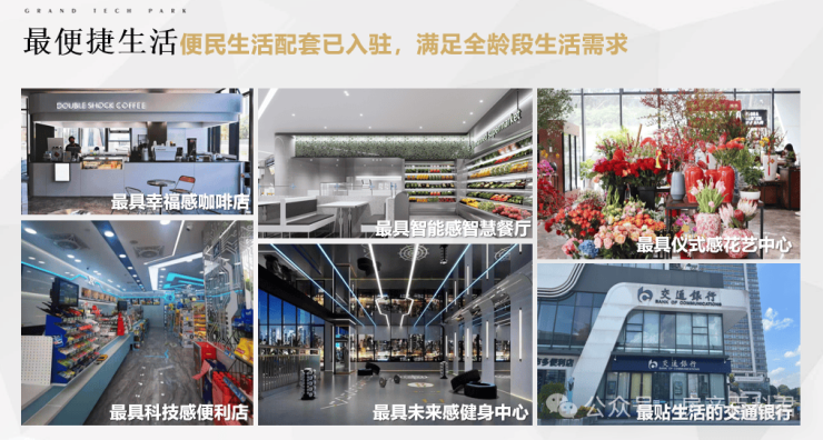 五大主题共享架空层+艺术绿廊:创客咖啡SALON、联合办公空间、阅读书吧、Party&Play Live、健康Club,还配置健身房,网球场,无边际泳池等墅级配套。
