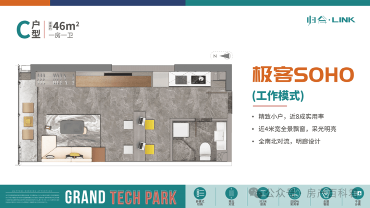 首推46-115㎡极客SOHO单位,全明廊设计、全景采光,让精英群体对生活的每一分想象都能在此体现。