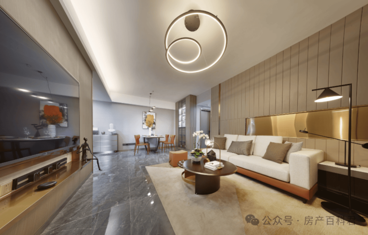 115㎡户型的客厅朝向为西,下午会有一点西晒,而108-114㎡户型的客厅则朝向东边。