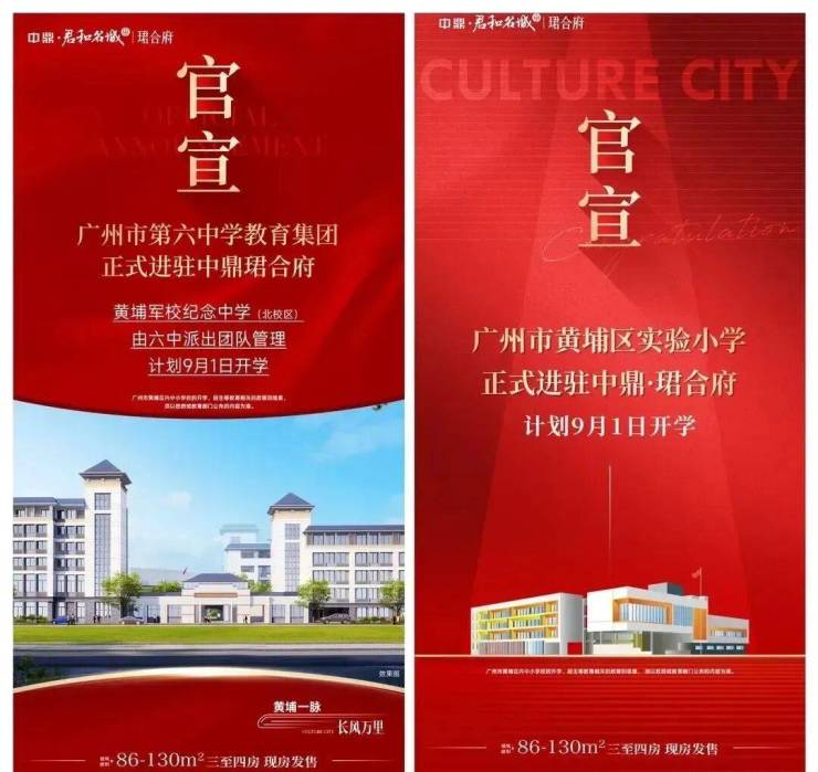 2024年4月30日,中鼎珺合府官宣广州市第六中学教育集团(黄埔军校纪念中学)进驻项目,该学校是广州市第六中学管理和办学的公立学校,根据黄埔区教育局招生计划,9月1日开学。