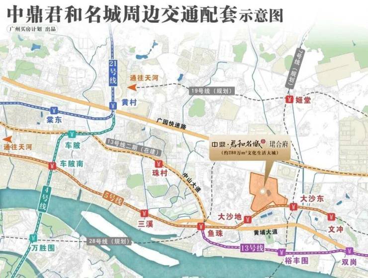 5号线大沙地站距离约800米,7号线二期大沙东站已开通,13号线裕丰围站也在规划之中,这三个地铁站都非常重要,构成了黄金3地铁交汇,同时,广园快速、黄埔大道、广佛高速,广州环城高速“三横一纵”路网环绕,无缝连接天河、越秀、荔湾等主城区,同时家楼下多条公交线路汇聚。