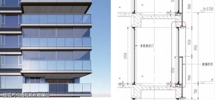 塔楼东西向主动提升配置,采用三银low-e玻璃断桥系统门窗,降低西晒等的影响,且全屋配置玻璃护窗栏杆,实现户内全通透的建筑设计。