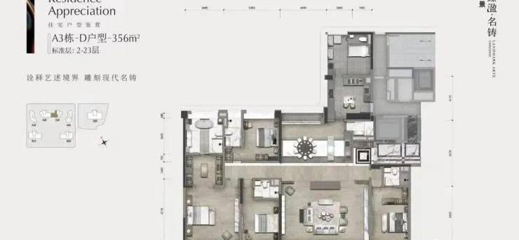 建面356㎡四房两厅四卫户型