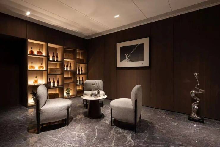 以007银幕形象为创意原点设计,汲取自蒙特卡洛F1赛车道,超宽4车位全尺寸,深色石材,搭配金属与炫酷回旋交叠灯,低调神秘,又充满现代科技智慧。