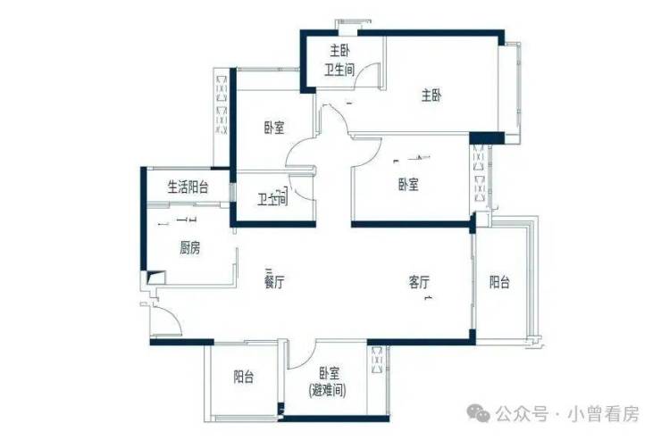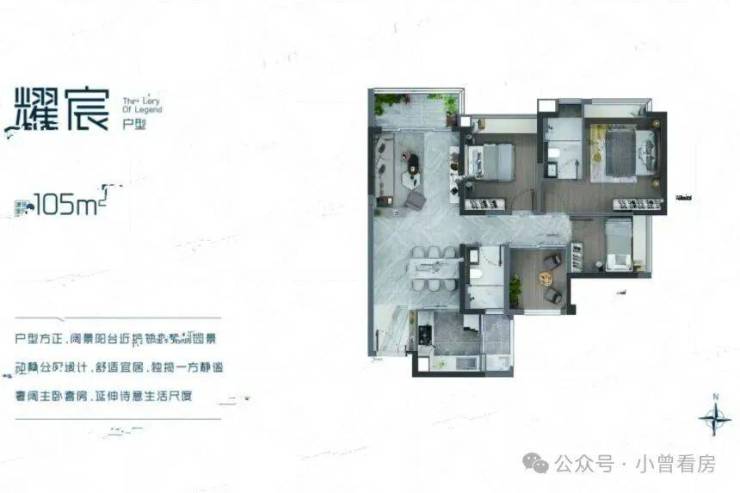 105㎡四房是刚需家庭关注较多的户型,总价 640 万元 / 套起,客厅开间 3.8 米,南向阳台连接客厅和次卧,长度约 4.2 米,晾晒衣物和休闲观景能分开使用,三个次卧最小的也有 8.5㎡,能放下 1.2 米的床和书桌,主卧带独立卫浴和飘窗台,储物空间还算充足。
