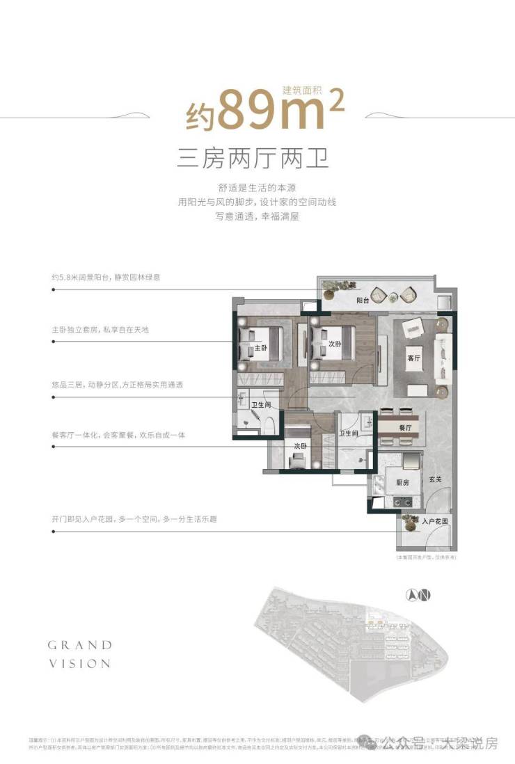 户型:建面约89㎡-168㎡阔景三至五房丨建面约159-163㎡创新叠拼