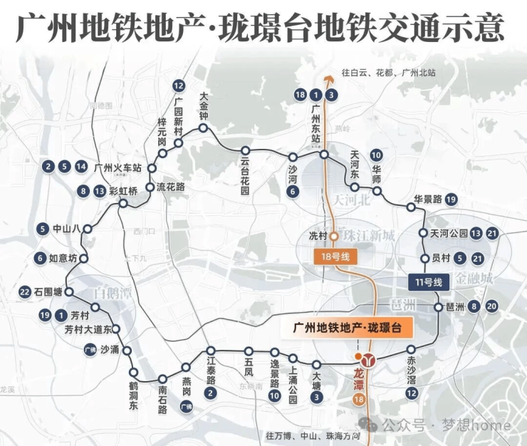 双地铁上盖,高速地铁18号线+广州首条大环线11号线龙潭站,其中11号线已开通