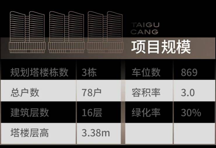 太古仓壹号整体项目总建筑面积约8.5万平方米,主体结构塔楼3栋共16层、裙楼3层、商业独栋7幢、地下3层配备近900个标准车位,商业与塔楼业主出入口完全阻隔,私密性一流。