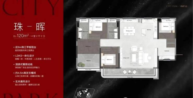 产品:项目在售2、3、4栋,1栋已售罄,3、4栋高层都是能望到江的,总层高25层,两梯三户设计,只有两个面积段,120㎡和140㎡,户型做得不错,在景观展现上用了功,极大程度去放大观江面,比方说超宽阳台、L型主卧转角飘窗、客厅预留观景飘窗等等,主打改善户型,2025年9月整体交房。
