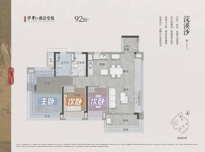 户型信息:主打90-125㎡中式超高层产品,部分小高层户型达120-140㎡。所有户型均为南向设计,实用率超100%,客餐厅带飘窗,主套带U型飘窗,采光通风好且空间利用率高。