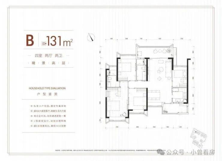 改善家庭可以重点看131㎡的四房两厅两卫,总价 500-520 万元,均为南北对流设计。