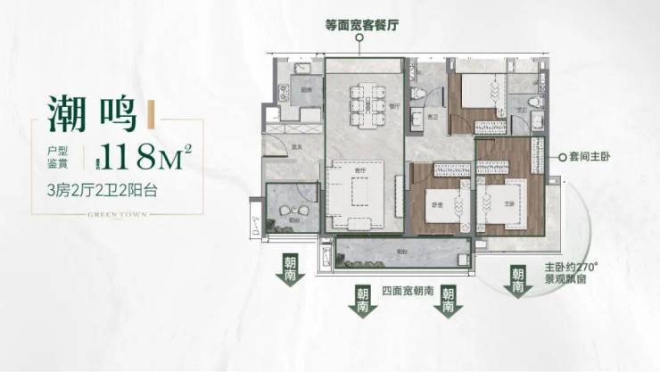 建面约118㎡的三房两厅两卫户型是目前的主力产品之一,我重点看了这个样板间。进门后玄关预留了完整的收纳系统,右侧是通顶鞋柜,左侧留空方便临时挂包放钥匙。客厅和阳台打通后,实际使用感接近4.5米开间,配上270度转角飘窗,视野开阔不少。最让我意外的是厨房——U型操作台+中西厨结合的设计,在同面积段里不多见。西厨区可以兼作早餐吧台,玻璃推拉门一关,油烟就被隔在操作区,开放式餐厅依然清爽。主卧带独立卫生间和L型衣柜位,次卧和书房之间的隔墙是非承重墙,未来可以根据家庭结构灵活调整。