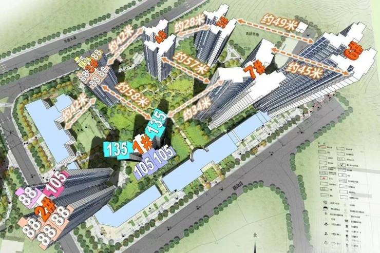 整个项目7栋商品住宅,前排4栋32-33层,后排3栋16-17层,