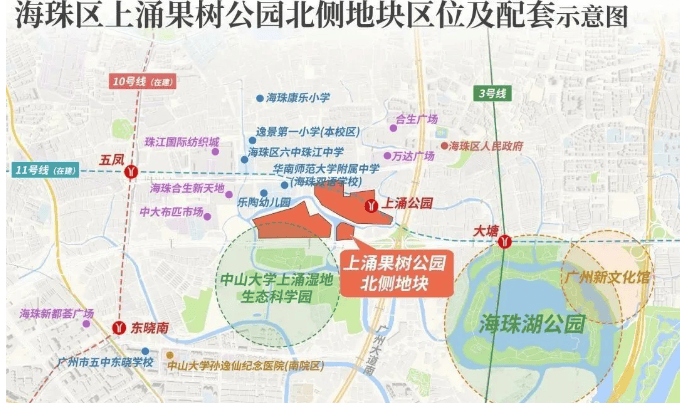 项目位于广州新中轴南段,紧邻地铁 11 号线上涌站(预计 2025 年底通车),步行约 225 米即可到达。